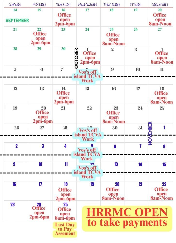 The HRRMC office is now open for in-person payments. Please refer to the calendar for specific days and times.